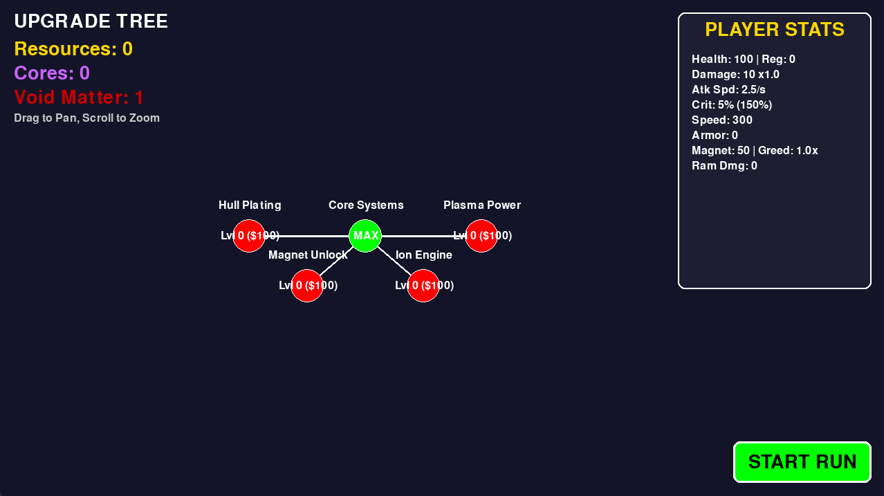 - Deep Progression: Collect Gold and Void Cores to unlock permanent stats in the massive Upgrade Tree.